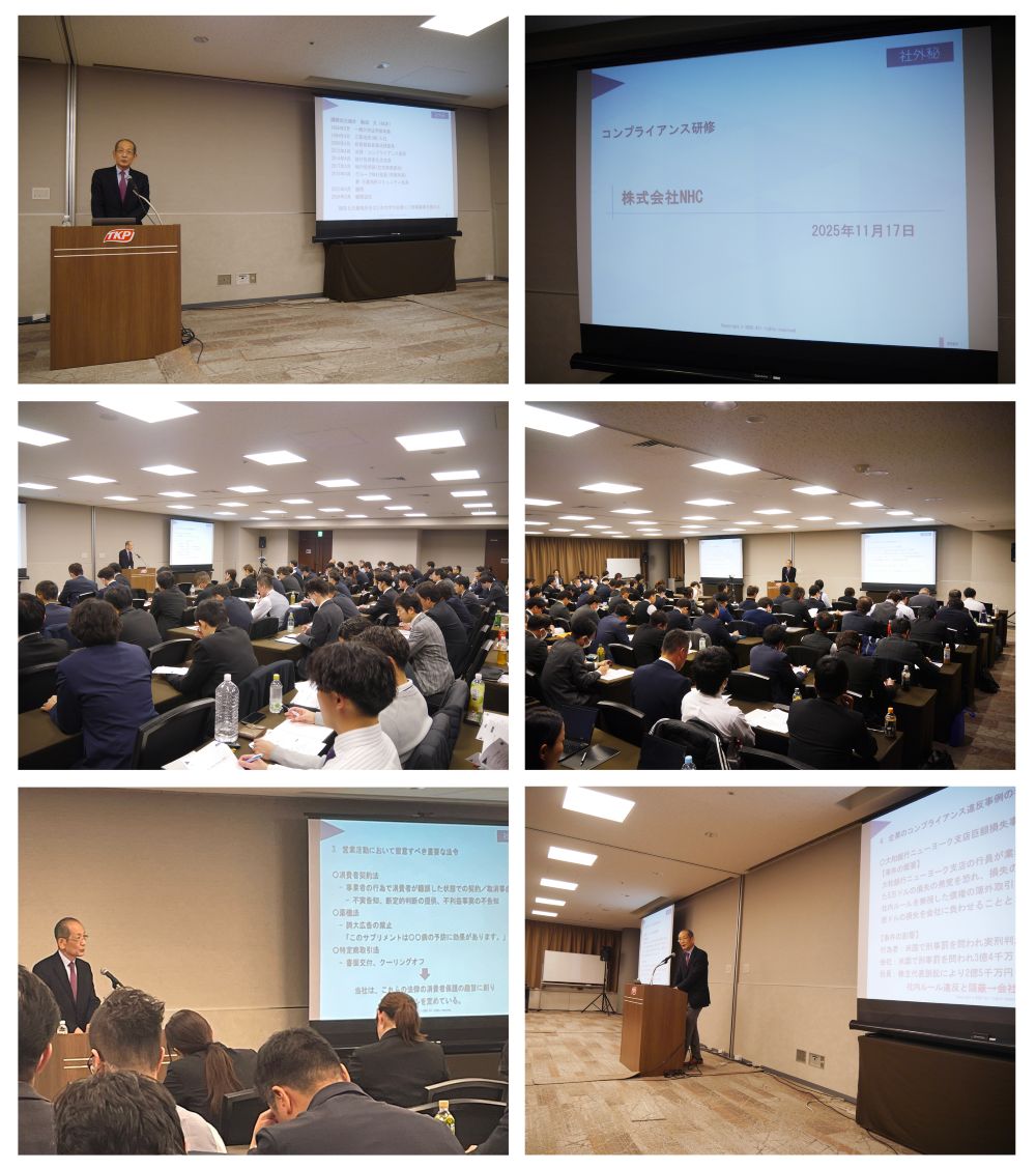 2025年11月17日(月)にNHCグループ全社員のコンプライアンス意識向上を目的として、名古屋にて研修を実施しました。